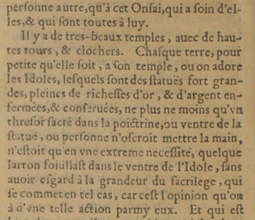 Bản Tường Thuật của LM Borri dịch ra tiếng Pháp bởi LM dòng Tên Antoine de la Croix (năm 1636) – trang 196. Tạm dịch/NCT ” … (Đàng Trong) có nhiều chùa chiền rất đẹp với những gác cao cùng gác chuông. Mỗi địa phương, dù nhỏ bé đến đâu, thì đều có chùa thờ thần phật. Lại có những tượng phật rất to chứa được vàng bạc bên trong. Thật không khác gì kho tàng thiêng liêng ở trong bụng hay ngực của tượng phật. Không ai dám đụng vào chúng, trừ khi bị khốn khổ cùng cực. Tên trộm nào thò tay lục lạo bụng tượng mà lại không nghĩ đến việc phạm thượng nghiêm trọng này, vì người ta ở đây thường coi việc làm như vậy là tội phạm thượng nặng …”.