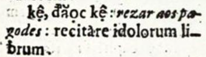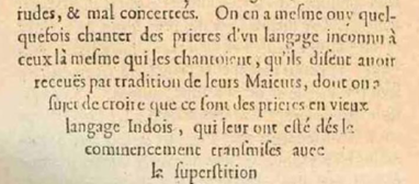 Tạm dịch/NCT: “(thanh điệu câu tụng không hòa hợp với nhau) người ta còn nghe những kinh cầu bằng ngôn ngữ mà chính người đọc cũng không hiểu, họ nói là đã học lại từ người trước và từ một ngôn ngữ Ấn Độ cổ đại[8] vào thời kỳ đầu truyền đến cùng với sự dị đoan”.