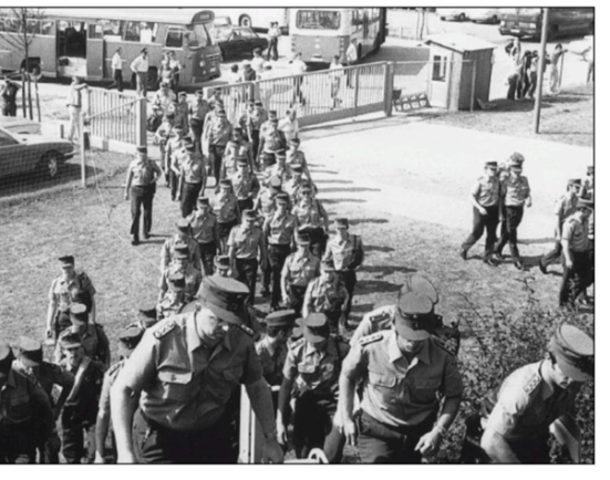 Hàng trăm cảnh sát và lính biên phòng Đức đã được đưa bằng xe buýt vào Làng Olympic trong một nỗ lực tuyệt vọng nhằm ngăn chặn