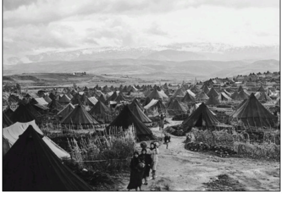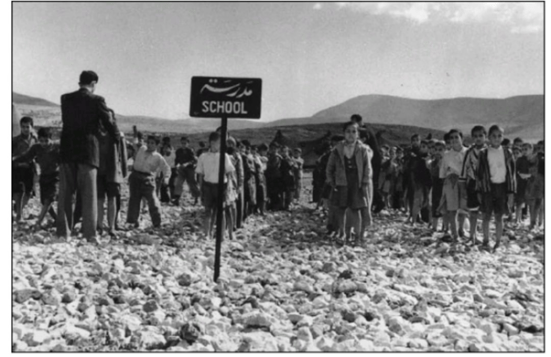 Điều kiện sống trong các trại tị nạn Palestine ban đầu thật kinh khủng. Đây là trường học đầu tiên trong trại tị nạn Jala ở Bờ Tây vào đầu những năm 1950.