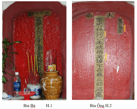 Đây là mộ song táng tuân theo nguyên tắc “ Nam tả nữ hữu” (từ trong nhìn ra) văn bia bằng chữ Hán trong mộ ông và Bà họ Lâm thường được đọc và dịch nghĩa thấy trước đây . văn bia của Ông H.2
