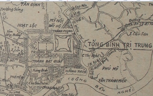 Trong ảnh sau có vị trí thành Gia Định (Thành Bát Quái) và sông Bến Nghé ( Bình Giang) rất gần nhau