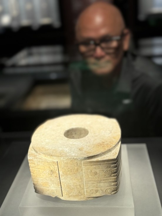 Ngọc Tông (琮) – Hình chụp tại Bảo tàng Viên Lương Chử, Hàng Châu, Chiết Giang (2024). Ảnh: Tôn-Thất Duy Anh.
