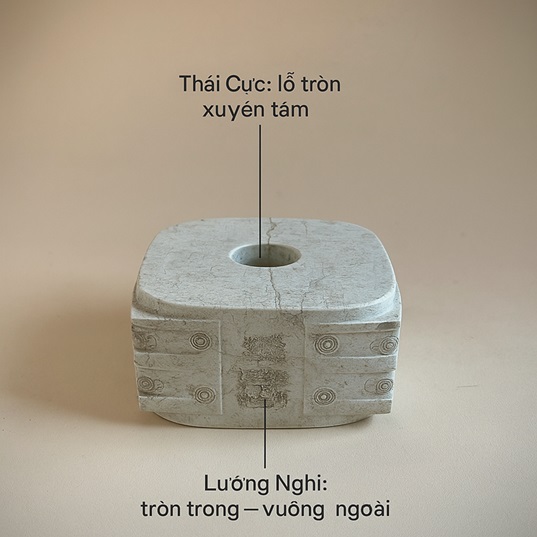 Hình A. Ngọc Tông đơn (琮). Thái Cực (太極): lỗ tròn xuyên tâm. Lưỡng Nghi (兩儀): tròn trong – vuông ngoài. Ảnh hiện vật: bộ sưu tập Lương Chử của tác giả.