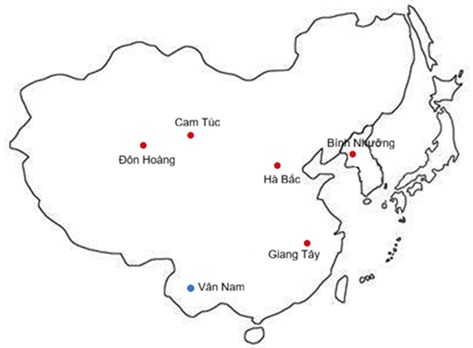 Hình 5 là những nơi có di tích thẻ tre/cây chép Luận ngữ bên Tàu.