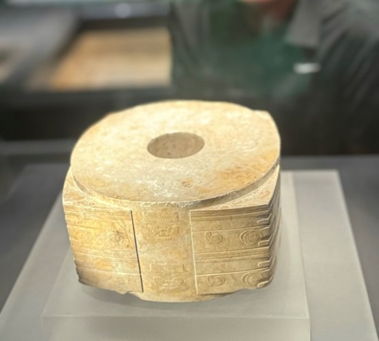 Hình 1. Ngọc Tông (琮), hiện vật văn hóa Lương Chử. Ảnh do tác giả chụp tại Bảo tàng Lương Chử, Hàng Châu 2024.