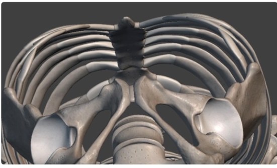 Hình 2. Góc nhìn cấu trúc khung xương từ phía trong lồng ngực và khung chậu.
