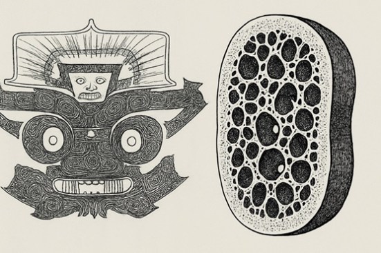 Hình 5. Đối chiếu hoa văn Liangzhu và cấu trúc xương xốp (trabecular bone).