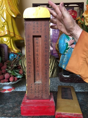 [30] Bài vị 3 & 4 được chúng tôi phát hiện sau đó và anh Nguyễn Hữu Lộc- Bảo tàng Lịch sử TP. Hồ Chí Minh, đã giúp phụng sao, phiên âm và tạm dịch vào cuối năm 2015.