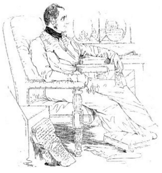 Bản khắc chất lượng kém này của James Prinsep cho thấy ông đã mắc phải căn bệnh sẽ giết chết ông bốn tháng sau đó. (Colesworthy Grant, Phác thảo in thạch bản, 1850)