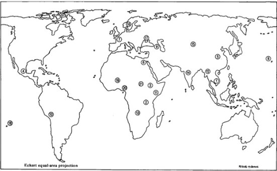 - ngay cả ‘thủy lợi’ mà người ta cho là ‘điều kiện sơ cấp’ để lập những nước sơ-khai đầu tiên (pristine early states), thí dụ Mesoamerica (số 4 ở hình 1), thì cũng chẳng trúng.