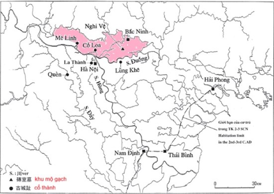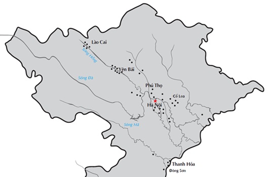 Hình 2 là những nơi có di tích đồ đồng Đông Sơn, trong khoảng 300 BC – 100 AD.[11]